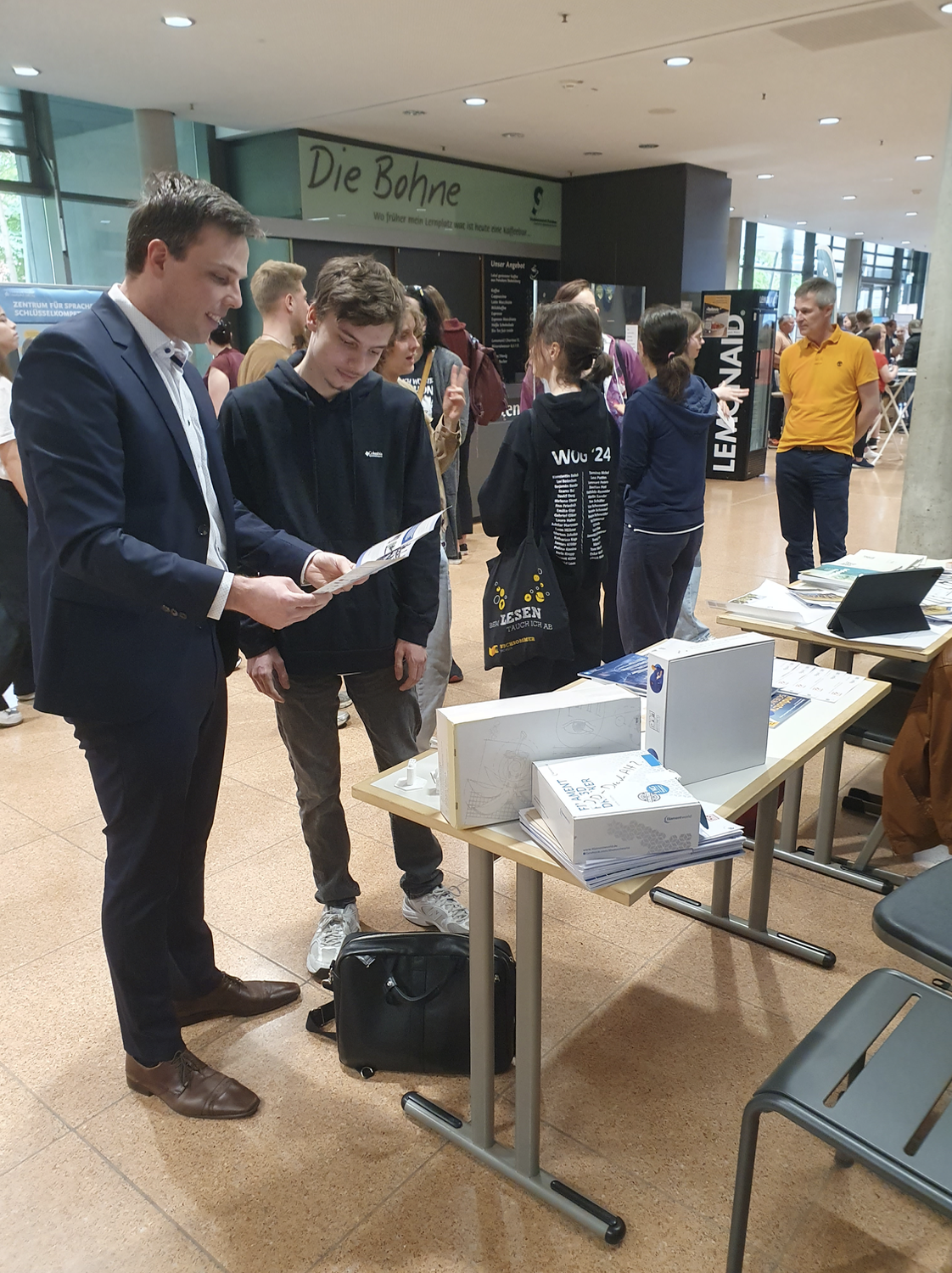 Directly afterwards, his courses and research artifacts are presented at the University's study exhibition. Here, individual questions and answers are discussed in-depth.